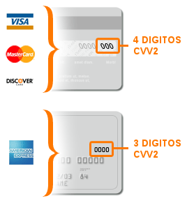 Como se muestraa continuación, el CVV es el número de tres dígitos impreso en el panel de firma en la parte posterior de la tarjeta